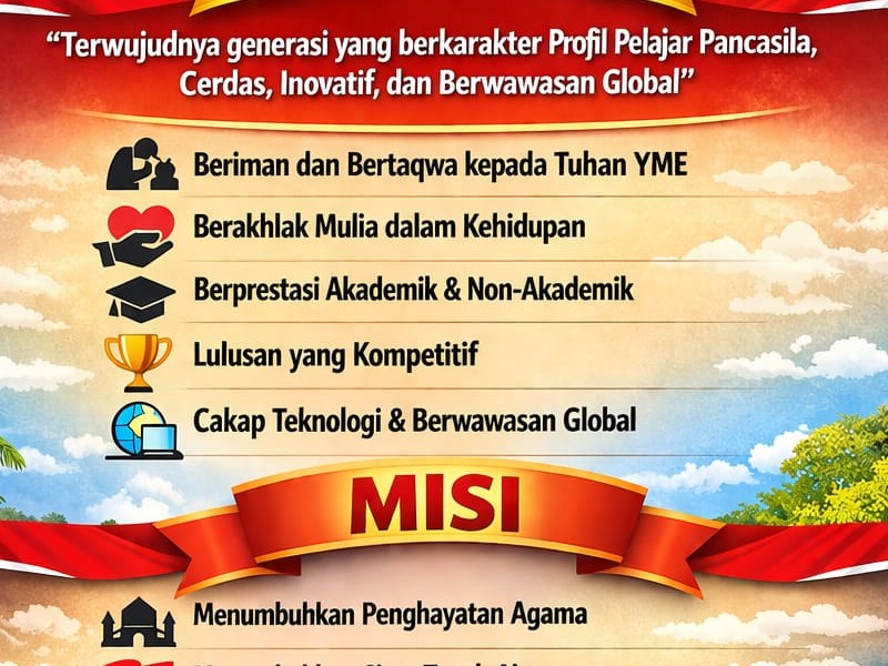 “Terwujudnya generasi yang berkarakter Profil Pelajar Pancasila, Cerdas, Inovatif, dan Berwawasan Global”